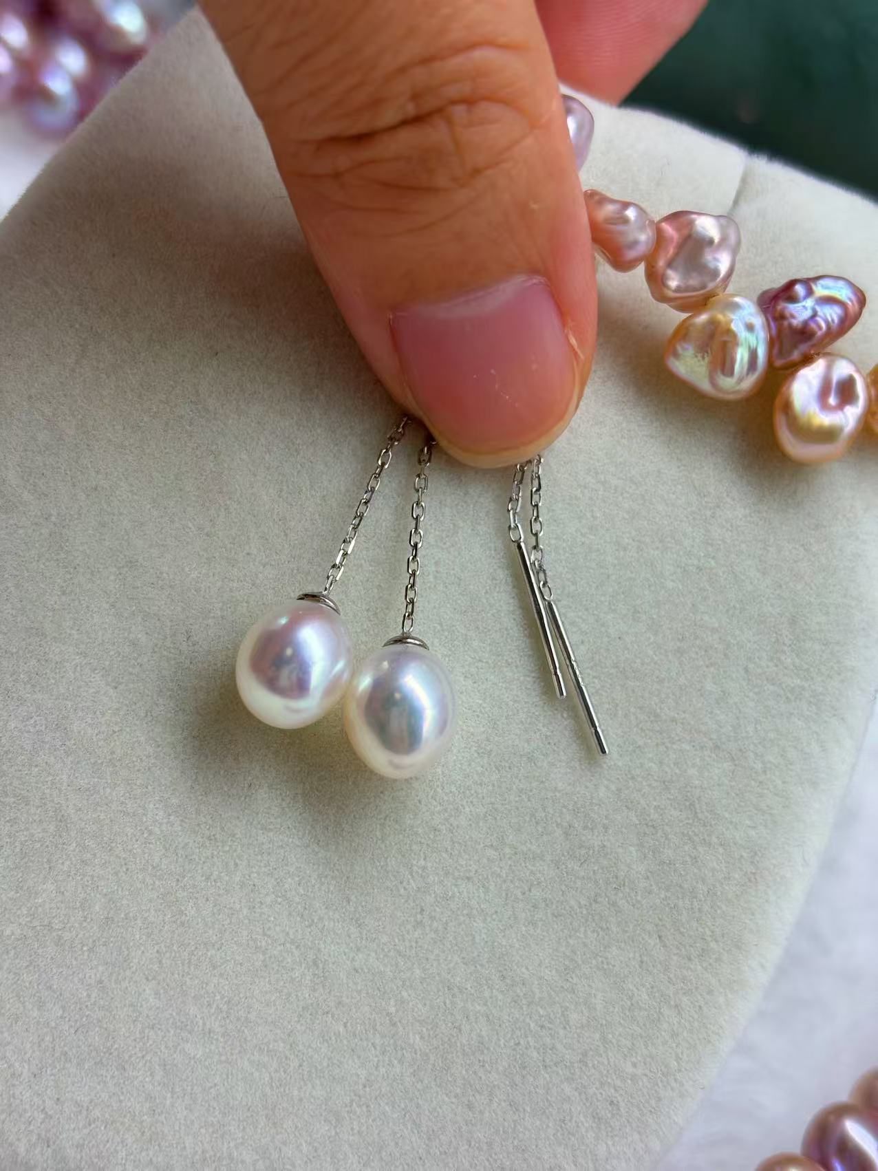 The luster of the pearls is extremely bright, the surface is flawless and extremely smooth. They can rival the high-quality akoya pearls.